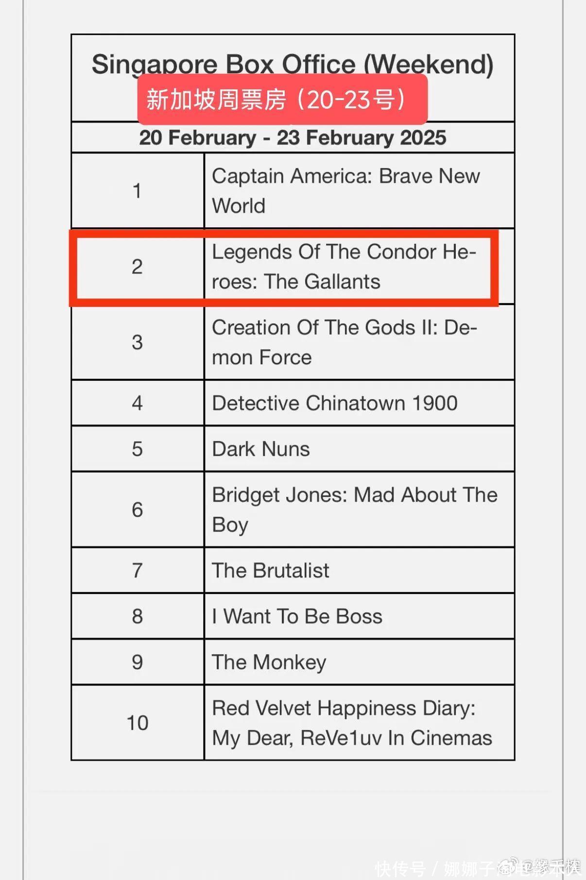 新加坡电影票房周榜:《射雕》第二!《哪吒2》将于3月6日上映