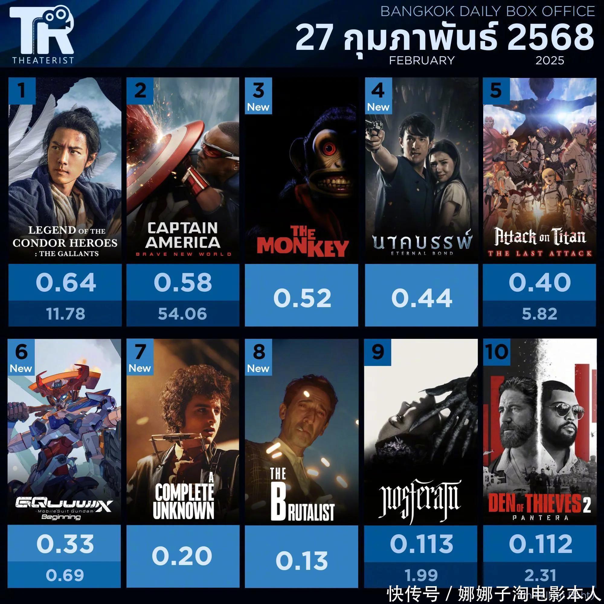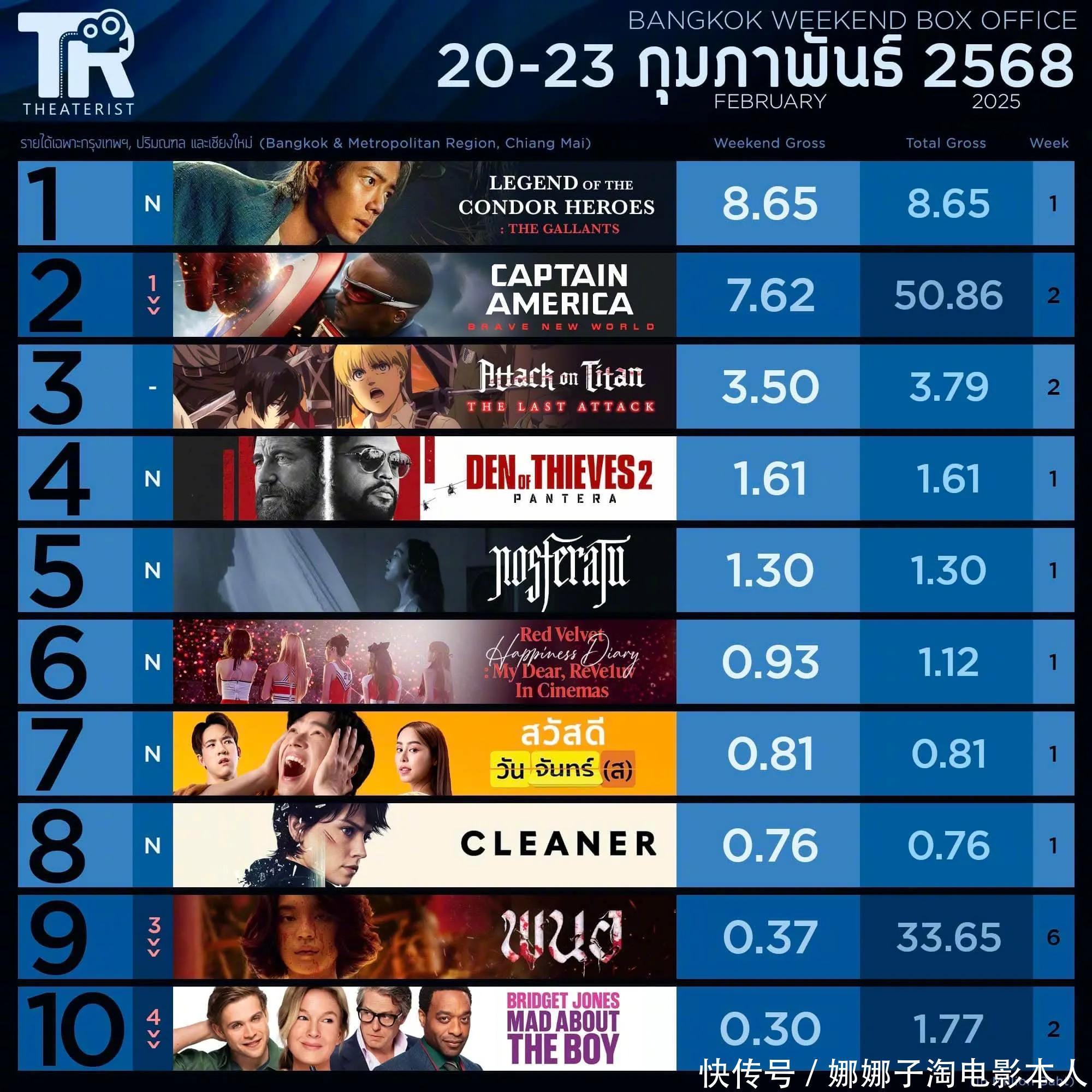 泰国电影票房周榜:《射雕》第一!《哪吒2》将于3月13日上映