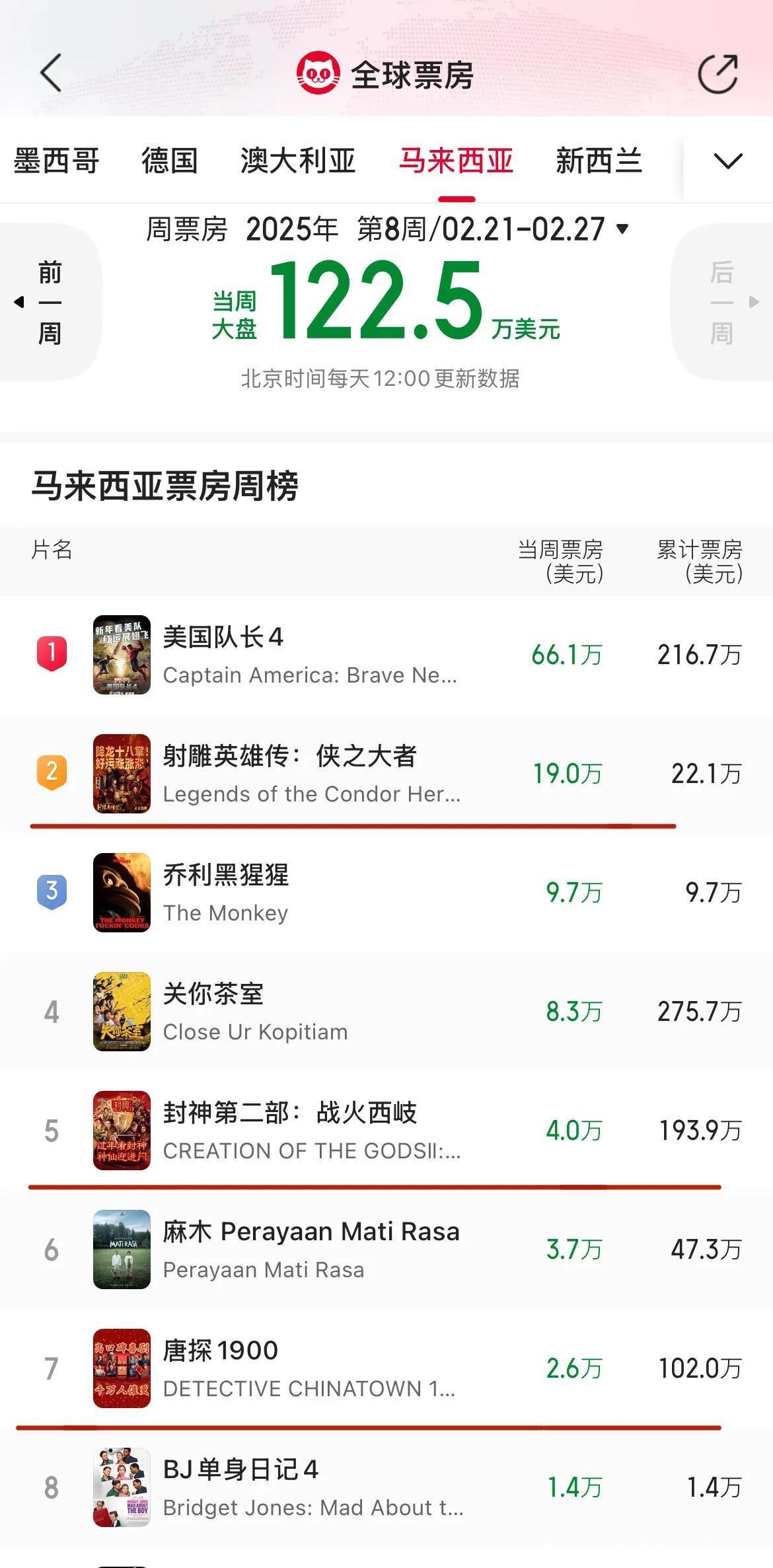 马来西亚电影票房周榜:《射雕》第二,《封神2》第五,《唐探1900》第七,《哪吒2》将于3月13日上映