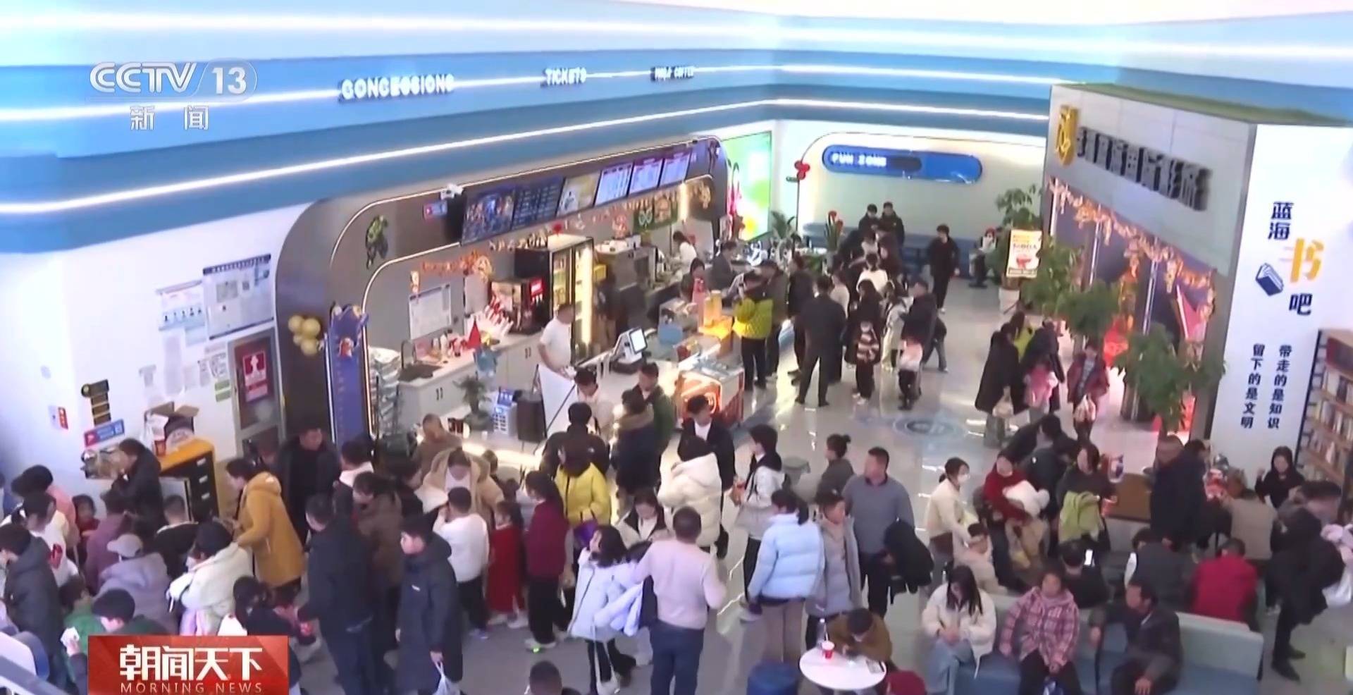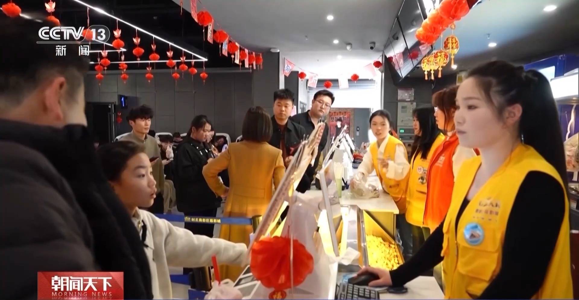 在河南省新乡市封丘县某影城,售票处前,前来购票和取票的不雅众一语气握住,休息区的座椅上坐满了恭候入场的不雅众,检票口的职责主谈主员勤劳地率领不雅众入场。