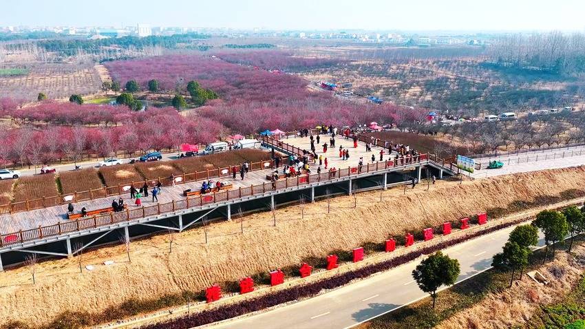 步入邹岗镇生态梅园,漫天盖地的梅花组成了一幅秀好意思画卷:红梅似火燃情,宫粉如霞映彩,白梅胜雪凝霜,重重叠叠的花瓣缀满枝端,绵延成肥硕雄壮的花海。微风轻拂,花枝摇曳生姿,高雅梅香沁东说念主心脾,成为市民踏青赏景、失业打卡的优选地。