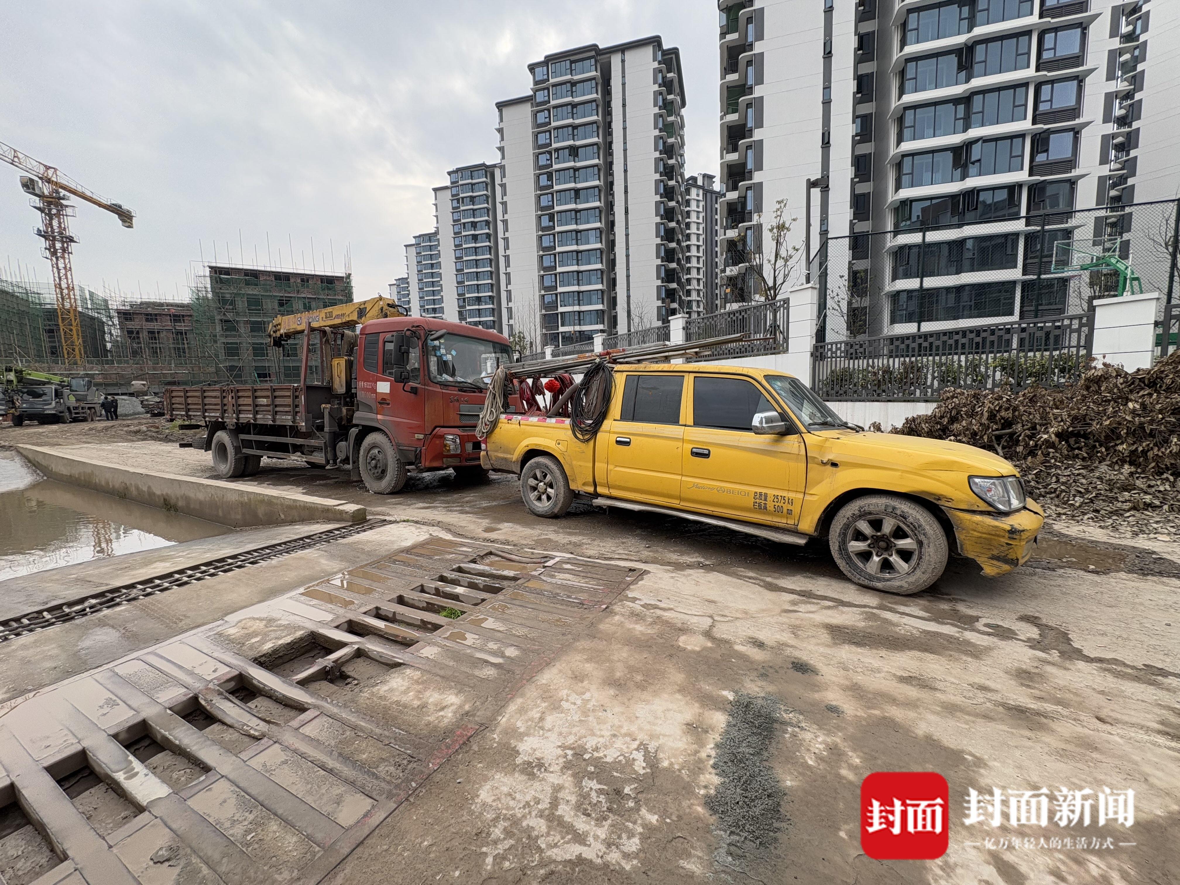在工地大门处,停着一辆工程车和一辆拉车。现场东说念主员告诉记者,这两台车是城管用来输送搅动机,被对抗后留在工地上的。