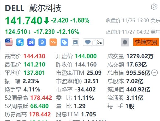 格隆汇11月27日|戴尔科技盘前大跌超12%。戴尔科技三季度改变后EPS为2.15好意思元,分析师预期2.05好意思元;三季度总体净营收243.7亿好意思元,低于分析师预期的245.9亿好意思元;三季度改变后运渔利润22.0亿好意思元,分析师预期21.6亿好意思元。三季度基建科罚有假想集团营收113.7亿好意思元,分析师预期113.4亿好意思元。