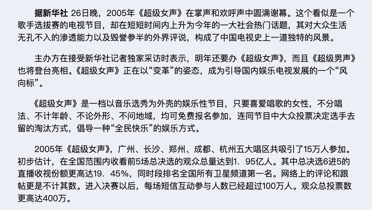 夏青,《从运转到当今不为东说念主知的“超等女声”》,吉林好意思术出书社,2006年