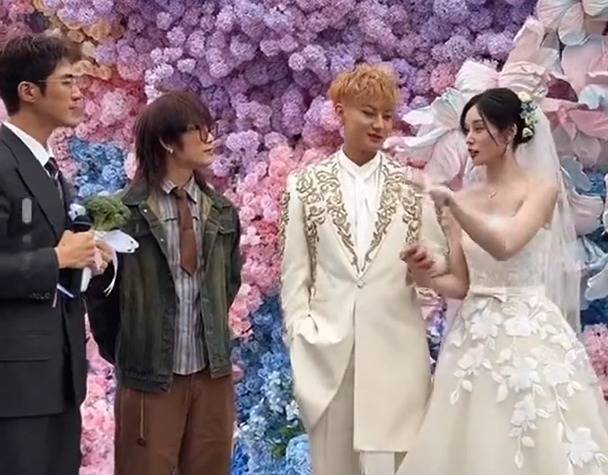 此外,婚典现场,徐艺洋手戴一枚500克拉“钻戒”。其回复称:是玻璃作念的。