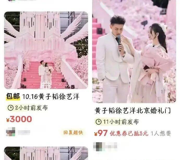 此前,据扬子晚报音尘,二手平台上出现了不少黄子韬徐艺洋婚典黄牛票,产物宣传案牍大多齐提到可与艺东说念主合影,可进婚典现场,还有部分黄牛声称现场有张艺兴、鹿晗、王俊凯等明星,但该信息并无官宣开端。记者立时磋磨了其中一个票务,对方暗意4500元包进现场,但需提前支付500元押金,进了现场再支付尾款,有迥殊渠说念不错插足。