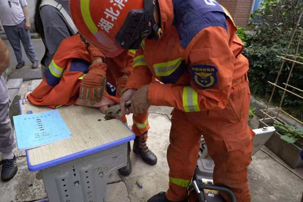 扶植东谈主员到达现场后发现,女孩的手指因为卡得过紧,血液轮回受阻,依然出现了红肿,情况超越危机。因教室晴明不及,扶植东谈主员与学校敦厚沿途将被卡女生和课桌疗养到一楼晴明亮堂的处所。制定扶植决议后,消防扶植东谈主员一边安抚女生心情,一边将小纸片塞出手指与孔洞的纰缪中,以免误伤手指,然后用冷水对女生人部进行降温,并防备翼翼的使用无齿锯、断电钳、平口螺丝刀等扶植器具对被卡部位进行切割、夹断和撬动。过程粗略20分钟的垂危扶植,女生被卡住的手指被得手取出。