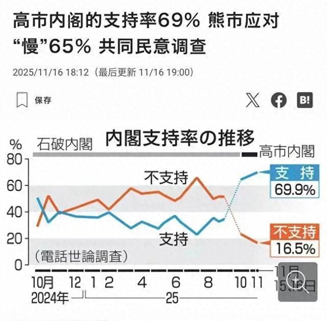 这两天许多东谈主看到东京上街那点反战游行,心里其实还挺安危的:你看,日本老匹夫也不全是疯子嘛,如故有东谈主反对高市早苗那种“出师台海”的狂言的。端正民调一出来,径直一个大耳光抽过来——中国东谈主自认为的“善意念念象”,被日本我方的数字连忙撕碎。