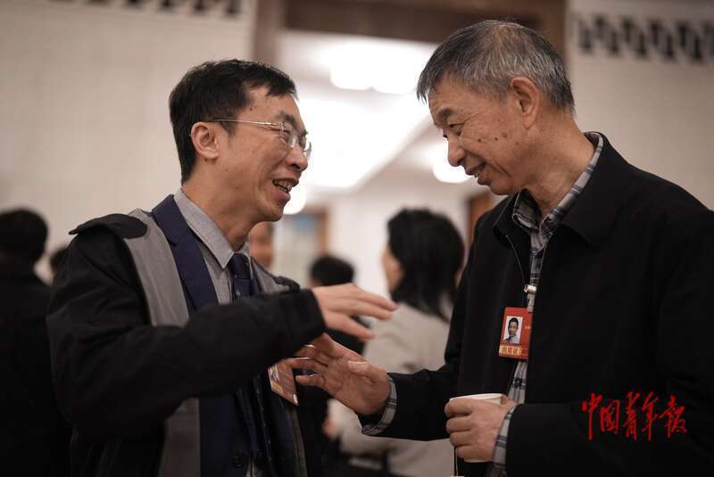 3月4日,北京,东谈主民大礼堂,世界政协十四届四次会议开幕会前,世界政协委员、中国科学院院士樊春海(左)与世界政协委员、中国工程院院士王坚交谈。当日,在世界政协十四届四次会议开幕会前,委员们诈欺良晌的候场技术强烈换取,中外媒体记者也握紧这一时机伸开拍摄、采访。中青报·中青网记者 李隽辉/摄